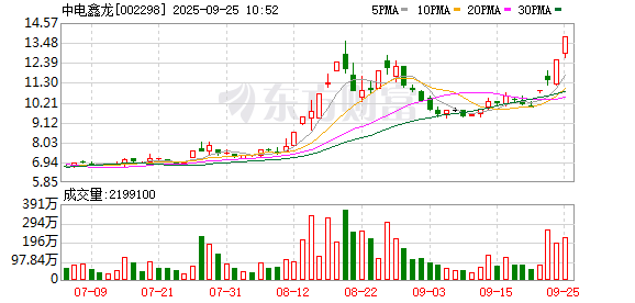 中电鑫龙再度涨停,4个交易日内录得3个涨停,累计涨幅为39.29%,累计换手率为112.60%。截至10:05,该股今日成交量2.13亿股,成交金额28.09亿元,换手率32.22%。最新A股总市值达102.06亿元,A股流通市值91.10亿元。