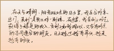“变技艺为价值”的逻辑,在全国各地的“美丽工坊”里演化出了不同的色彩。在新疆博艺斋“美丽工坊”,残疾妇女拿起刻刀,在厚实的牛皮上雕琢乾坤,较短时间内实现从入门到上手接单,让残疾妇女体验到“有事可做、有钱可赚”的幸福感。大江南北的“美丽工坊”,为残疾妇女提供了证明自己价值的机会。